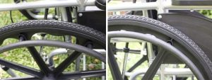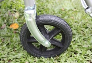- Bánh sau an toàn: Bánh sau 24 inch được trang bị phanh tay, đảm bảo an toàn khi dừng lại hoặc di chuyển trên địa hình không bằng phẳng.
